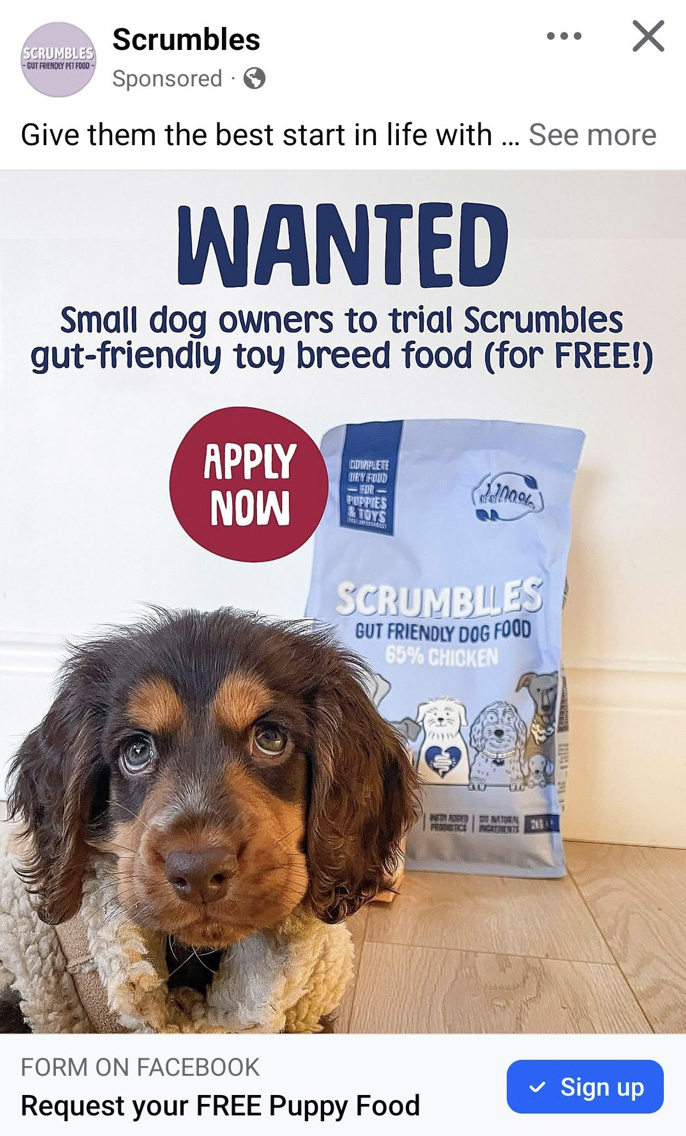 Hey everyone! Keep an eye out for free sample pack of Scrumbles dry food ad on Facebook. To increase your chances of seeing it: Let me know if it works for you! https://m.facebook.com/freestuff1st |